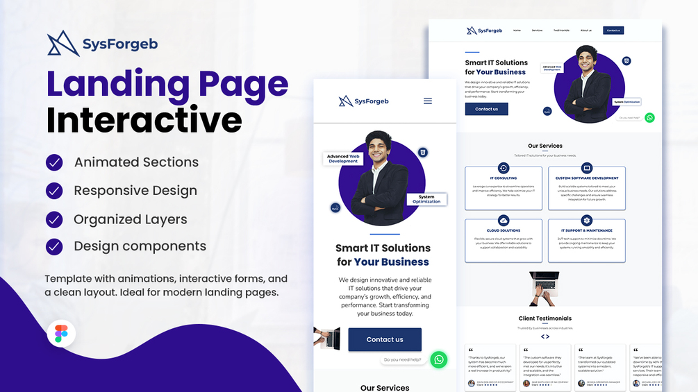 Create professional and modern landing pages effortlessly with this interactive Figma template. Designed with system engineering businesses in mind, this template is versatile enough for any company or project needing a clean and impactful design.